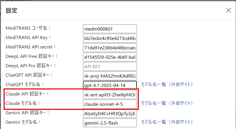 MediTRANS PlusにCluadeのAPIキーを設定する