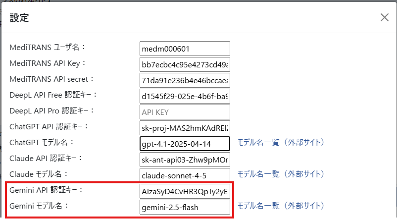 これでMediTRANS PlusでGeminiを使用する準備ができました。