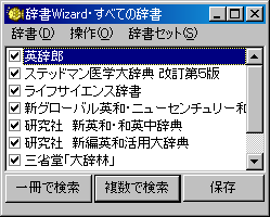 | 認識している辞書を表示します。プルダウンメニューより、希望の辞書を選択できます。 辞書名の左に レ が付いているのが選択した辞書です。 |