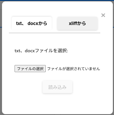 xliffファイルを読み込む場合、ファイル読込の画面で「xliffから」を押します。