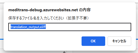 「xliff保存」を押すとファイル名を指定するダイアログが表示されます。