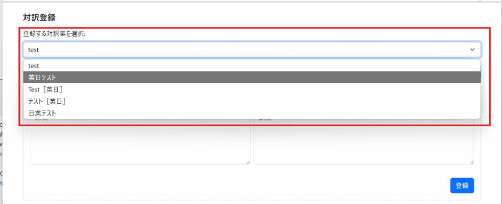 作成されると、「対訳集選択」ボタンを押したときの一覧に表示されます。